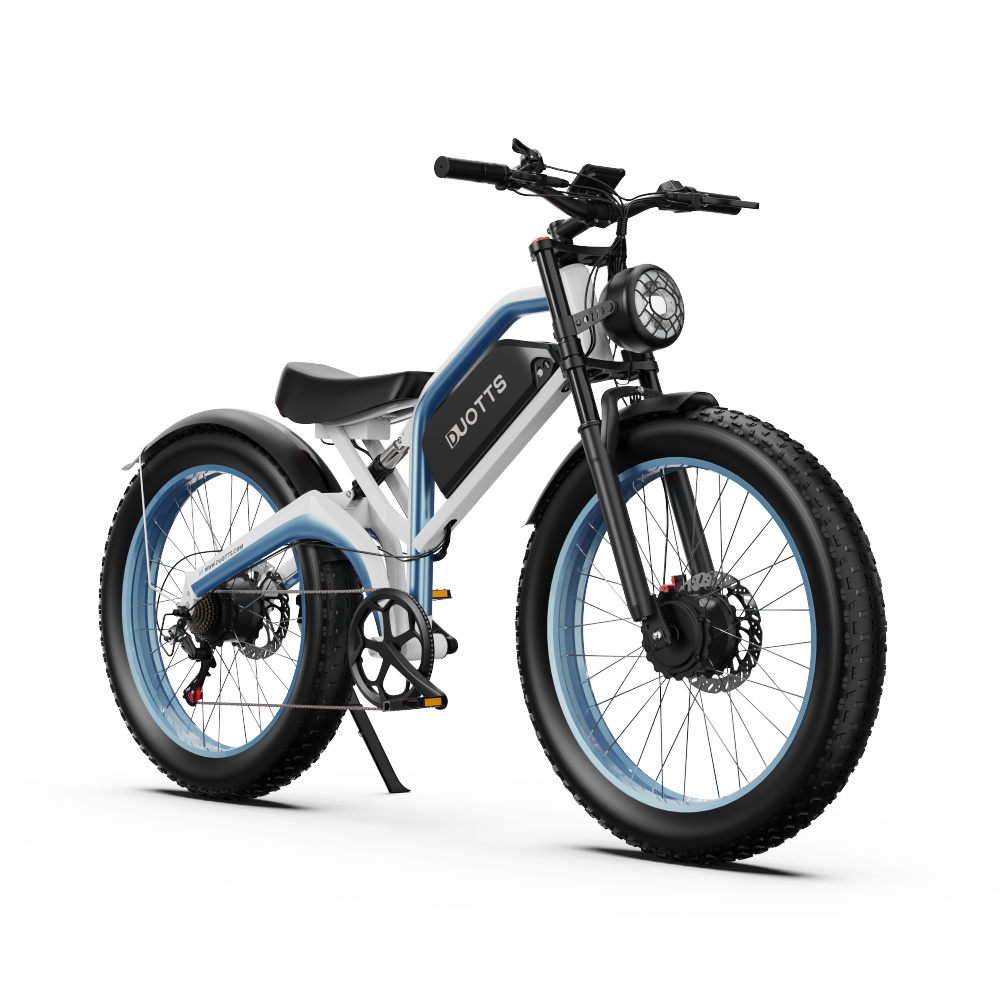 Duotts N26 är en kraftfull elektrisk cykel designad för urbana resor och terrängutflykter. Med sina dubbla motorer, breda däck och ett kraftfullt batteri erbjuder den oöverträffad kraft, stabilitet och autonomi inom sin kategori.